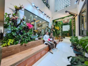 Không gian tại Nha khoa Phương Thành với nhiều mảng xanh tạo một sự thoải mái cho khách hàng